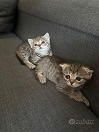 Vendo cuccioli di Scottish fold e straight. Mamma Straight e padre fold. Entrambi i genitori testati e negativi per FIV/FeLV ed entrambi visibili. Verranno ceduti con libretto sanitario, compreso di prima visita veterinaria, prima vaccinazione e sverminazione. Abituati a lettiera, cibo solido e umido. Pronti da metà/fine Maggio.