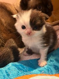 Disponibile per la prenotazione cucciola scottish fold highland nella rata colorazione Chocolate bicolor. La gattina sarà consegnata con Pedigree Enfi da compagnia a giugno dopo aver effettuato sverminazione ,due vaccinazioni trivalenti, test feci e giardia. I genitori sono di mia proprietà e sono testati fivbfelv e pkd. Ulteriori foto del video via WhatsApp al 3356468003