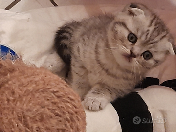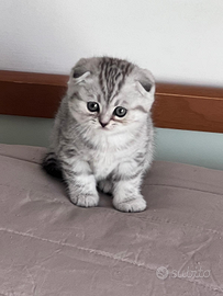 Disponibile adorabile femmina Scottish Fold colore tabby silver con libretto sanitario ,vaccinata e sverminata ,abituata della lettiera e tiragraffi. Genitori con pedigree testati Fil Felv negativi.PURA RAZZA sicurezza per salutte ,carattere e belezza.La razza perfetta per chi vive da solo e per chi ha bambini.Proprio per carattere dolchissimi e armoniosi ,vanno dacordo con altri animali.USO WHATTSAPP 3392618913.