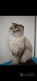 Smokie, gattina Scottish fold blue point di 16 mesi di età, con pedigree. Carattere socievole, dolce ed affettuosa. Cedesi con pedigree, 2 vaccini, sverminazione, libretto e certificato di buona salute. Disponibile trasporto in tutta Italia con corriere dedicato al trasporto cuccioli.