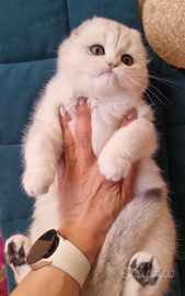 Maschietto scottish fold nato il 20.09.2025. Sverminato, vaccinato con doppio vaccino trivalente, Microchip, pedigree ministeriale Enfi, certificato di buona salute? Contratto di cessione da riproduzione oppure compagnia. Genitori testati Fiv felv pkd