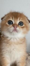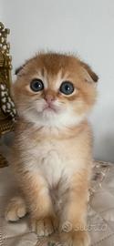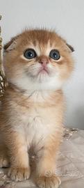 Disponibile splendido cucciolo di Scottish Fold maschio pedigree , colore NY12 golden con occhi smeraldo. Nato a ottobre, sarà pronto per l'adozione a fine dicembre. I genitori sono testati VELF, VILF e PKD1. Il cucciolo non è portatore di malattie genetiche. Verrà ceduto con: Libretto di buona salute Due vaccini obbligatori Due trattamenti anti vermi Certificato veterinario di buona salute Siamo allevamento riconosciuto a livello internazionale WCF. Ci troviamo a Bologna. Per chi arriva da fuori, è possibile consegna del gattino presso la Stazione Centrale di Bologna e anche può essere effettuata la consegna a metà strada a un piccolo incentivo economico. Disponibili videochiamata, foto, video e appuntamento su richiesta. Annuncio rivolto esclusivamente a persone realmente interessate e consapevoli del valore e delle esigenze della razza e esclusivamente per famiglie o privati, non rivendita. Per qualsiasi informazione non esitate a contattarmi.