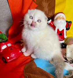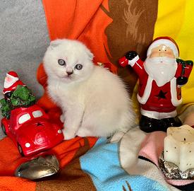 CUCCIOLO DI SCOTTISH FOLD Nato 05/10/25 Mantello morbidissimo colore bicolor, verra ceduto con libretto sanitario,vaccino,controllo medico,sverminazione. Genitori testati Fiv/Fev, corso vaccini completo,tutti controlli della salute regolarmente effettuati. Disponibile da subito.Un regalo perfetto per Natale. E una razza tranquilla,perfetta per le famiglie e per le persone che amano gli animali e tante coccole! Già abituato ad uso della lettiera e tiragraffi. No perditempo! NO SPEDIZIONE, SOLO RITIRO DI PERSONA!