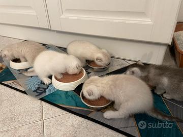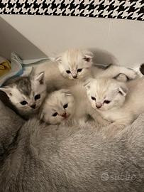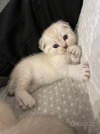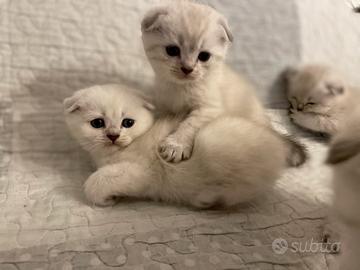 Dolcissimi cuccioli Scottish Fold nati 28 novembre cercano casa. Sono già abituati alla lettiera, mangiano da soli e crescono in ambiente familiare. Saranno consegnati svezzati, con primo vaccino, libretto sanitario. Entrambi genitori negativi test fiv/felv.