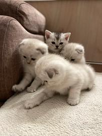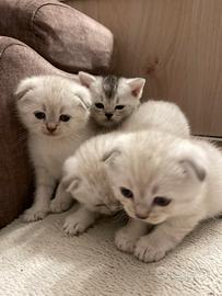 Dolcissimi cuccioli Scottish cercano casa. Nati 28 novembre, sono già abituati alla lettiera, mangiano da soli. Cercano in ambiente familiare. Saranno consegnati svezzati con primo vaccino, libretto sanitario buona salute. Genitori entrambi negativi test FIV/FELV.