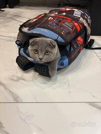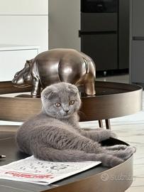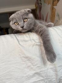 Gattino grigio, dolcissimo e sano, già con 2 vaccini fatti. Ha 4 mesi, è un Scottish Fold maschio con le tipiche orecchie piegate. Per motivi di tempo non posso occuparmene come merita. Solo a veri amanti degli animali.