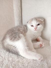 Dolcissima e bellissima cucciola di Scottish fold di 50 giorni circa in fase di svezzamento, usa la lettiera e la tiragraffi. È possibile farle visita e sarà ceduta dopo essere svezzata e con il primo vaccino. Genitori visibili. Per maggiori informazioni telefonare il 3393255706