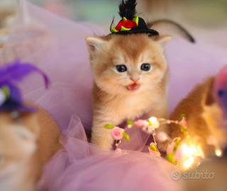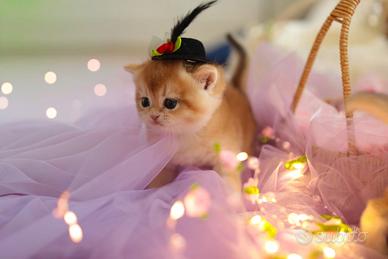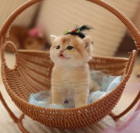 Esclusiva gattina Scottish Straight Golden L'allevamento Kvitucha Krasa propone una splendida gattina di razza Scottish Fold (tipologia Straight), colore ny12 Golden, con intensi e affascinanti occhi verdi. La piccola ha attualmente 1 mese e sarà ceduta al compimento dei 3 mesi, completamente svezzata, educata alla lettiera e cresciuta con la massima cura in ambiente familiare, per garantire equilibrio e dolcezza caratteriale. Discendente da linee selezionate, rappresenta un perfetto equilibrio tra eleganza, salute e tipicità della razza. Mantello Golden ny12, luminoso e setuoso Occhi verdi profondi e magnetici Struttura armoniosa ed elegante Carattere dolce, affettuoso e socievole Ottima predisposizione alla vita in famiglia con bambini e anziani. La gattina verrà ceduta con: Pedigree Libretto sanitario Vaccinazioni adeguate all'età Trattamenti veterinari effettuati Certificato di buona salute Solo per famiglie serie e amanti della razza. Per maggiori informazioni o per riservarla, contattare in privato. Una gattina affascinante, dalla rara e delicata bellezza, destinata a diventare non solo un animale, ma un'elegante presenza nel cuore e nella casa di chi la sceglierà.