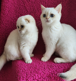Vendo feminucce Scottish fold Scottish straight di colore black golden shaded point. Cuccioli hanno 4 mesi. Gli genitori sono visibile e teststi felv/fiv e pkd con esiti negative. Cuccioli verranno ceduti svezzati, sverminati, abituati al uso lettiera e tira graffi con doppio vaccinazione e muniti libretto sanitario e pedigree ENFI. Per info cell. 3208065683 WhatsApp.