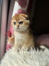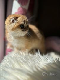 Allevamento De Russel vende cucciola di razza scottish fold golden, nata 13/12/2024 , vaccinata , ha un carattere molto affettuosa e socievole . Genitori visibili, negativi Fiv, Felv, pkd1 , Fcov
