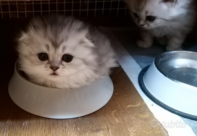 Scottish Highland silver femmine ultime disponibili, nate a maggio, figlie di genitori testati fiv felv pkd negativi, vengono cedute sverminate, vaccinate e con attestato di buona salute.