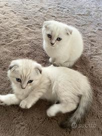 Dolcissimi cuccioli maschi Scottish Fold cercano casa. Sono già abituati alla lettiera, mangiano da soli e crescono in ambiente familiare. Saranno consegnati svezzati, con primo vaccino, libretto sanitario. Entrambi genitori negativi test FIV/FELV. Nati 28 ottobre.
