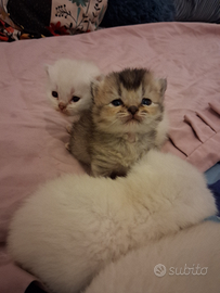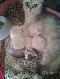 Disponibili alla prenotazione, ancora 2 Cuccioli di Scottish fold e straight una cucciolata di 4,nati il 04/01.Rimangono 1 maschietto e una femminuccia, genitori testati di mia proprietà, mamma Scottish fold blu silver schaded occhi verde smeraldo e papà black golden tabby point occhi celesti .I cuccioli saranno ceduti da compagnia e pronti nella prima metà di marzo, con controlli veterinari, sverminazioni, vaccino e il loro libretto sanitario ,Sapranno usare perfettamente lettiera e tiragraffi .Saranno ben socializzati.