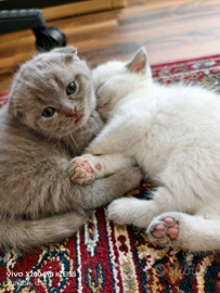 Scottish Straight e Scottish Fold, due maschi e due femmine. Sono nati 16 dicembre. Sverminati, abituati a tiragraffi, usano la lettiera.