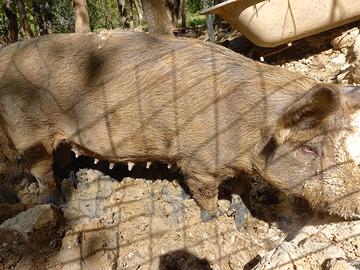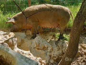 Vendesi scrofa di 3 anni, incrocio duroc danese, garantiti 10 maialini minimo, mammelle tutte integre, parto previsto tra 10 giorni circa, prezzo dopo visione. INFO 3209643823 Per la ricerca maiali, maialini suini