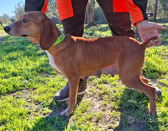 Cedo segugia maremmana originale di quasi 2 anni, ben avviata al cinghiale non teme lo sparo super vivace è ubbidiente si cede per cessata attività, possibilità di prova vicino l animale si cede solo ad appassionati e recupero spese no per il valore della cagna.
