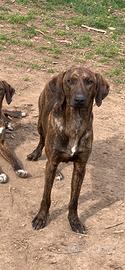 Maschio, 5 anni, tigrato scuro a pelo raso. Ottimo cane da lavoro, abituato a seguire selvaggina di taglia grossa. Ha buone doti naturali, usato poco nell'ultima stagione perché non va d'accordo con un altro cane del gruppo.