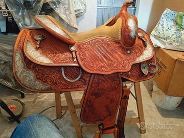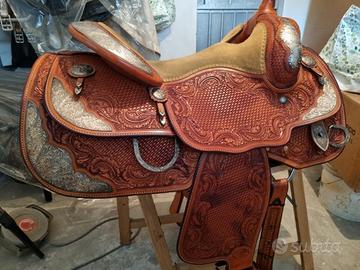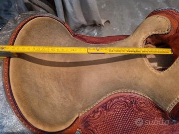 Sella B99-342 è una sella personalizzata Bob del 1999. Ha l'albero Vancore con una misura della gola di 7 3/4" di altezza x 6 1/4" di larghezza. L'albero è alto 15 1/2" e ha un sedile California, che è il nostro sedile più alto, ed ha una dimensione del sedile finito di 15". La sella ha fender Avila da 15 1/2. La sella è in ottimo stato, e non presenta difetti. Non è per sognatori affaristi ma per intenditori.