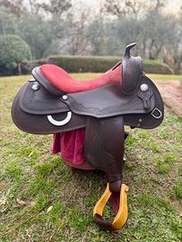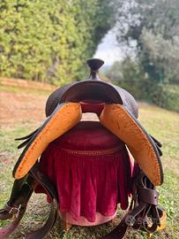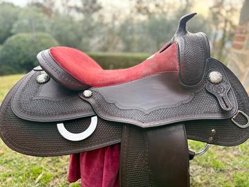 Vendo sella westwood tecnique color testa di moro, seggio in camoscio rosso. Vendo per cambio sella. Usata veramente poco. Misura seggio 17 Arcione Full Quarter