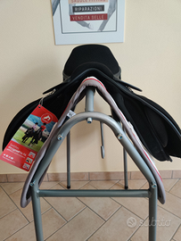 Sella inglese da completo, passeggiate, lavoro in piano, saltini marca inglese Thorowgood made in UK, modello appositamente disegnati per cavalli con schiena e spalle molto larghi (avelignesi, bardigiani, quarter, Paint etc).