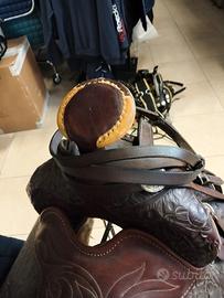 Vendo bellissima sella Texas One 16 in ottimo stato completa di sottopancia, antisgroppa coordinato testiera con redini il tutto coordinato posso spedire in tutta Italia con pagamento alla consegna Gaetano 3284694128