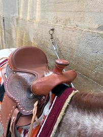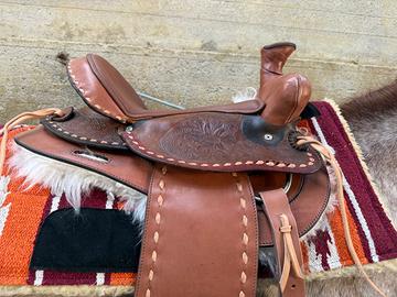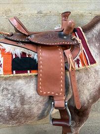 Vendo bellissima sella nuova, monta americana semi quarter, taglia del seggio 14,5 interamente costruita da un sellaio privato. Purtroppo la vendo per inutilizzo.