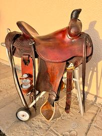 Sella da roping cactus misura 16. Sella in ottime condizioni. Staffe in foto non comprese, ho le sue staffe in legno. Contattare solo se interessati.