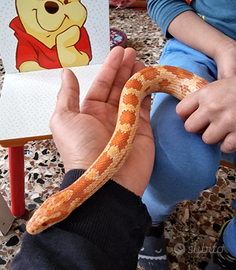 Presento "Shank il rosso", splendido esemplare maschio di serpente del grano albino occhi rossi(circa 8 anni). Carattere estremamente docile, abituato fin da piccolo al contatto umano e cresciuto anche in presenza di bambini. Ideale per chi cerca un animale tranquillo e gestibile. Alimentazione: abituato sia a cibo decongelato che vivo (topi). Cedo per trasferimento, completo di teca e pinza per l'alimentazione. Ottimo anche come riproduttore. Solo per persone esperte e realmente interessate. No perditempo. Consegna a mano in zona Monza.