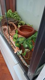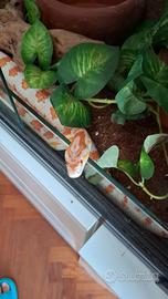 Cedo splendido esemplare adulto di serpente del grano, con la sua teca in vetro, tappetino, ciotola per l'acqua, tana, piante finte, mattonelle di segatura di cocco e confezione di 50 topi adulti surgelati. L'esemplare è in ottima salute, con mute perfette, cedo a chi se ne intenda e lo tratti con cura.