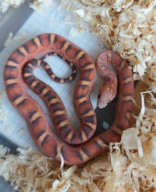 Pantherophis guttatus (serpente del granoturco) scaleless Okeetee het anery, hypo '25. Maschietto molto bello nato a me a fine Luglio '25, ben mangiante decongelato. Consegna a mano zona Mantova e Verona