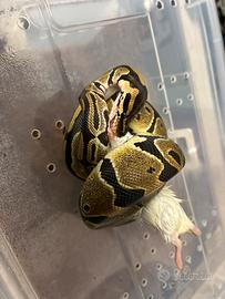 Disponibile maschio baby di Pitone Reale nato l'11/09/2025. Carattere docile si fa maneggiare facilmente, mangia decongelato mai saltato un singolo pasto. Cedo causa impegni lavorativi Cedesi con regolare documentazione cites Se mi lasciate il cell posso chiamare o mandare altre video/foto su whatsapp