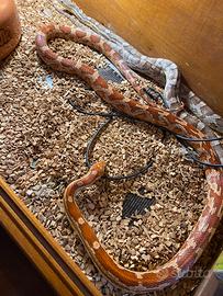 Vendo serpenti del grano maschio e femmina adulti di 5 anni , i serpenti godono di perfetta salute alimentati solo con surgelati, ogni anno si sono riprodotti. Completo di teca e accessori.