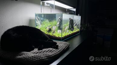 L'acquario è in funzione, con layout maturo in stile Iwagumi. Puoi acquistarlo così com'è, completo di piante e pesci (con ritiro organizzato).