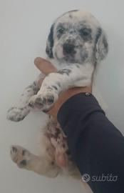 disponibile setter inglese cucciolo di tre mesi colorazione bianco e nero genitori visibili e con pedigree ottimi cani da caccia e da beccaccia si cede con profilassi sanitaria completa per informazioni chiamare 3205554721 consegna in tutta Italia con trasporto a carico dell'acquirente.