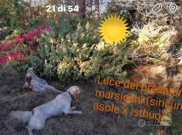 Cedo femmina di 6 anni setter inglese esperta , caccia principalmente beccacce , molto bella , ferme in tipico stile setter ,guidate da cardiopalma. Se cercate la setter bella e brava senza perdere anni alla ricerca del giovane da tirare su , è la cagna giusta. Pronta per qualsiasi prova su qualsiasi terreno.