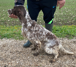 Cedo stupenda setter inglese femmina di 13 mesi,di pura razza linea di sangue tutta "crocedomini". Conosce quaglie e qualche beccaccia, giro collegato anche nel bosco fitto, super avida galoppo inserito senza movimento di coda. Ferma e consente e inizia a riportare cagna con buone prospettive e tanta volontà ma cmq da finire perché giovane, non teme lo sparo non difetti. Non perditempo cedo solo ad amanti per cessata attività solo recupero spese non trattabile gia e regalata. Non ha pedigree.