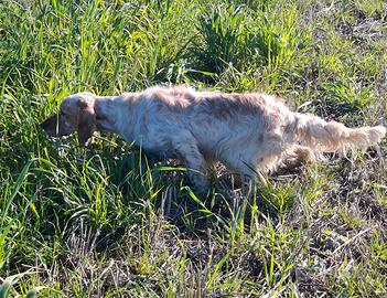 Cedo stupenda cucciola di setter inglese di 10 mesi e mezzo, ottima linea di sangue e ottima struttura, figlia a grandi cani da beccaccie. La cagnetta visto la sua eta è gia molto validissima ferma stilosa e solida , riporta alla mano e consente e bel giro collegato. Conosce quaglie fagiani e a trovato qualche beccaccia no perditempo senza difetti tutta alla prova, prezzo non trattabile vale molto più cedo solo a amanti per cessata attività..