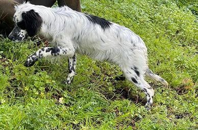 Setter femmina bianco nera di 6 mesi con pedigree, la cagnetta ha fermato diverse quaglie da volo, e le ali di una beccaccia. Sta iniziando anche a riportare, la vendo per cessato interesse. (Vado a cinghiali e basta). PREZZO 500€ SOLO CONTATTO TELEFONICO 3922530073 NO VIDEO, FOTO E PERDITEMPO.