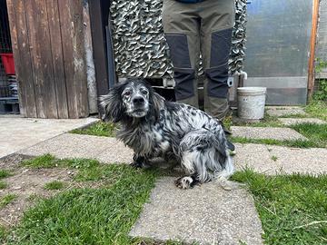 Causa problemi fisici , cedo setter inglese femmina bianco nera , 7 anni , taglia piccola . ferma , consenso , riporto tutto ok Prezzo 500 trattabili
