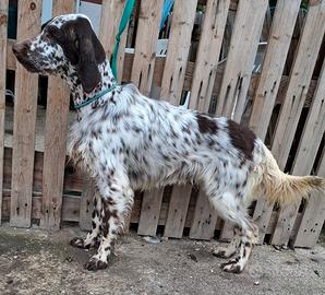 Cedo stupendo cucciolo di setter inglese maschio di 13 mesi, ottima struttura e ottima genealogia con regolare pedigree. Il cane conosce quaglie e starne e qualche beccaccia. Ferma solida, buon riporto e consente. Bel giro molto avido e collegato, sia in montagna che in pianura. Si cede per cessata attività, cedo solo ad amanti non perditempo non ha alcun difetto di salute e a caccia qualsiasi prova.
