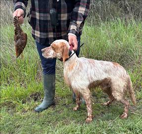 Cedo stupendo setter inglese maschio di 18 mesi ottima linea di sangue, visto la sua eta cane gia molto forte e maturo..Il cane ferma solida e stiliso, riporto alla mano e consenso, ottimo giro inserito collegato anche in montagna. Il cane conosce bene beccaccie, starne e quaglie e fagiani, il cane nel ultimo periodo a vinto anche diverse gare su starne, il cane e a qualsiasi prova !! Senza difetti a caccia e di salute cedo a 550€ non trattabile gia è regalato no perditempo cedo per cessata attività per problemi di salute del proprietario.