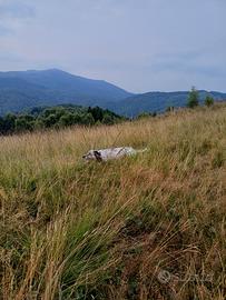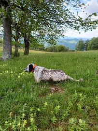 Soggetto tipico per costruzione, movimento e presa di punto. All'attivo due stagioni di caccia su selvaggina naturale di montagna, pernici bianche (due trasferte in Lapponia), galli forcelli e coturnici delle nostre Alpi e beccacce. Fermatore sicuro, consenso naturale e spontaneo, riporto sollecito.