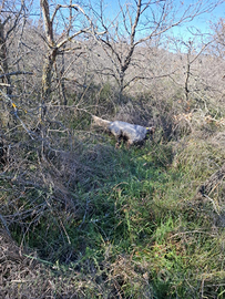 Cedo stupendo setter inglese maschio di 2 anni e mezzo linea di sangue tutto "Val di chiana" con regolare pedigree, struttura e movimenti stupendi. Il cane è stato sempre portato in montagna cane avido ubbidiente e collegato, conosce bene beccaccie, quaglie, starne e fagiani. Ferma riporta e consente spontaneo tutto dimostrabile, non perditempo si cede per cessata attività per problemi di salute solo ad amanti.