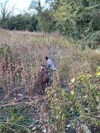 Setter inglese femmina bianco fegato di quattro anni ferma consente e riporto da sistemare collegata e ubbidiente.No pedigree