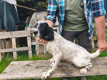 Cuccioli di setter inglesi nati il 24 aprile 2025 da una cucciolata mirata di grandi cercatori e incontristi soprattutto di beccacce e pernici.I genitori sono visibili e in mio possesso.Vendo 2 cuccioli maschi( vedi foto) sverminati - microchippati-3 vaccini e già in possesso di pedigree a € 650