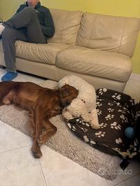 Regalo setter irlandese con grande dispiacere. Purtroppo il recinto del giardino non impedisce le fughe.. il cane si chiama Rambo, É docilissimo e molto affettuoso.