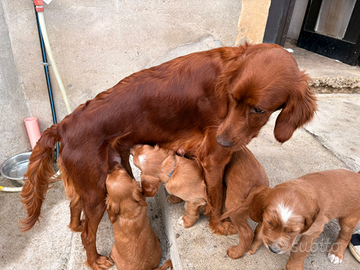 Nati il 4 dicembre 2025 una splendida cucciolata di setter irlandese. Linea di sangue da lavoro di grande tipicità, morfologia e carattere. Entrambi i genitori sono visibili, grandi cani da lavoro e compagnia e con un ottimo pedigree. I cuccioli (maschi 500 € -femmine600€) saranno disponibili da metà febbraio. Sverminati, microccipati, vaccinati, muniti di libretto sanitario, iscritti all'anagrafe canina e all'E.N.C.I.(pedigree). Solo per persone veramente interessate é gradito contatto telefonico, dopo le ore 17,oppure messaggio WhatsApp al 3495546062 Andrea.