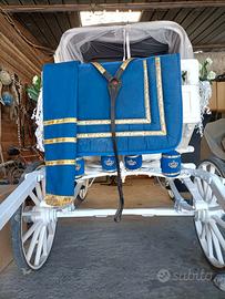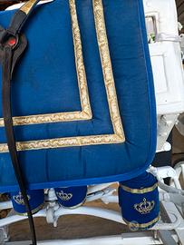 Completo per cavallo da sfilata o spettacolo azzurro oro sottosella sciarpetta pettorale e fasce tutto in tinta adatto a andaluso o frisone.. spedizione disponibile