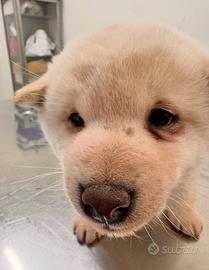 Akoiotai maschio di Shiba Inu con pedigree mantello bianco nato il 21 12 2025, presto disponibile, vaccinato sverminato. Genitori visibili.
