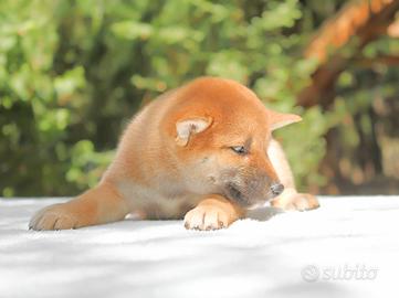 Lei è Yalina (nome indicativo), cucciola di Shiba con il manto rosso di 2 mesi di età. Sguardo fiero e dai tratti raffinati. È nata nel nostro centro cinofilo, dove anche i suoi genitori sono presenti e visibili. Ama osservare prima di agire: perfetta per chi cerca una compagna sensibile e profonda.